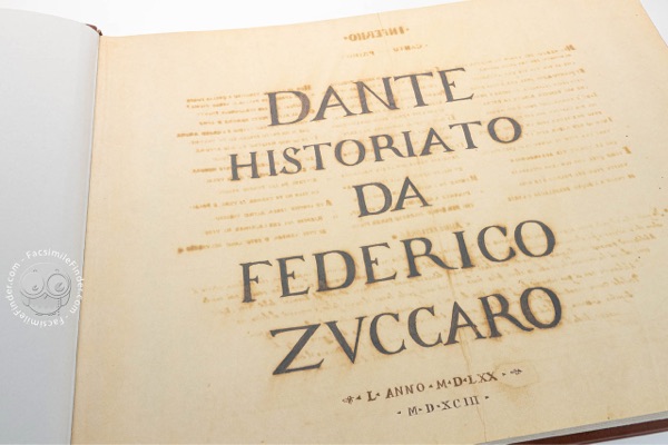 Desde el siglo XIV, el Poeta Supremo protagoniza infinidad de retratos y escenas, obra de los más reconocidos artistas plásticos. Es el caso del Dante historiato, colección de dibujos realizados por Federico Zuccari entre 1586 y 1588, cuando el pintor fue convocado al monasterio de El Escorial por el rey Felipe II. La serie se compone de 88 dibujos inspirados en la Divina comedia, que muestran un profundo conocimiento de la obra y en cuyo desarrollo el autor asocia a los más distinguidos académicos e intelectuales de la época. El Infierno está representado por 28 dibujos, el Purgatorio por 49 y el Paraíso por 11 imágenes. Mientras que el primero y el último tema se ilustran con lápiz negro y rojo, el Purgatorio se representa con la técnica de la pluma y la acuarela. En el reverso de cada dibujo hay una transcripción autógrafa del texto de Dante por Zuccari. Al morir este, la colección de dibujos pasó a manos de la familia Orsini, para quien el artista había trabajado anteriormente. En la actualidad se encuentra en la Galería Uffizi, en Florencia.