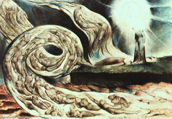 Torbellino de amantes de William Blake, conocida también como Círculo de los lujuriosos, óleo sobre lienzo,1824–27, Museo y Galería de Arte de Birmingham, Birmingham.
