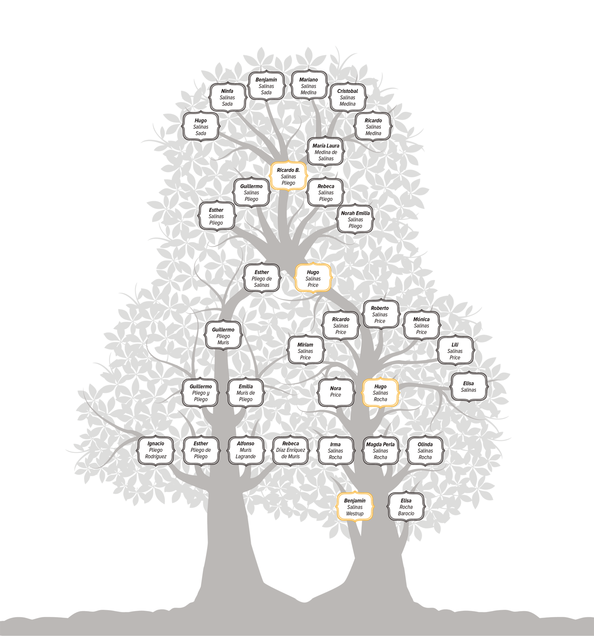De acuerdo con Ricardo Salinas: “Mi bisabuelo Benjamín empezó el negocio y contando de allí, soy la cuarta generación pasando por el abuelo don Hugo Salinas Rocha y mi padre, Hugo Salinas Price.” La historia de la familia Salinas y sus negocios se remonta hacia principios del siglo pasado.