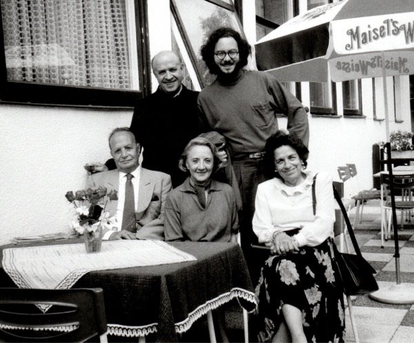 Sinopoli –padre de Giuseppe–, una amiga de la familia y Maria Sinopoli –madre de Giuseppe–; atrás, un sacerdote amigo de la familia, y Sergio Vela. Bayreuth, 1990. Archivo personal de Sergio Vela.