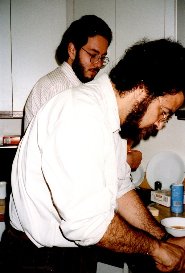Sergio Vela y Giuseppe Sinopoli cocinando juntos en Chicago, otoño de 1985. Archivo personal de Sergio Vela.