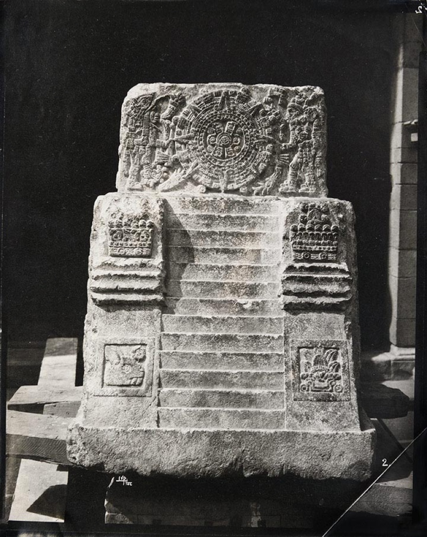 Teocalli de la Guerra Sagrada en el Museo Nacional de Antropología, Historia y Etnografía, fotografías de José María Lupercio, Ciudad de México, 1916-1927. Colección Ricardo B. Salinas Pliego.