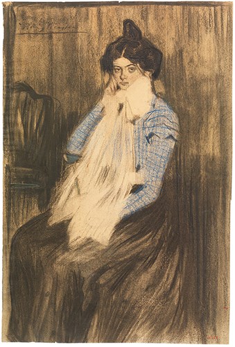 Lola, hermana del artista, carboncillo y lápiz de color azul y rojo sobre papel, de Pablo Picasso, circa 1899. Ayuntamiento de Barcelona.