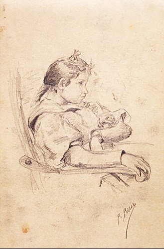 Lola acunando a su muñeca, dibujo a lápiz sobre grafito de Pablo Picasso, 1894. Museo Picasso, Barcelona.