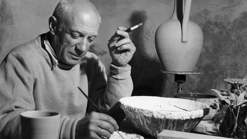 Pablo Picasso en su estudio en Vallauris, 1953. Edward Quinn.
