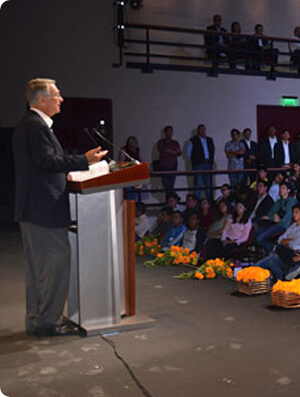 En el marco de la Semana Nacional del Emprendedor 2017, Ricardo Salinas ofreció una conferencia titulada, “Un compromiso con México”, en la que presentó ideas sobre la necesidad de fortalecer las libertades en el país, fomentar un cambio cultural que promueva la generación de riqueza y luchar por una prosperidad compartida.